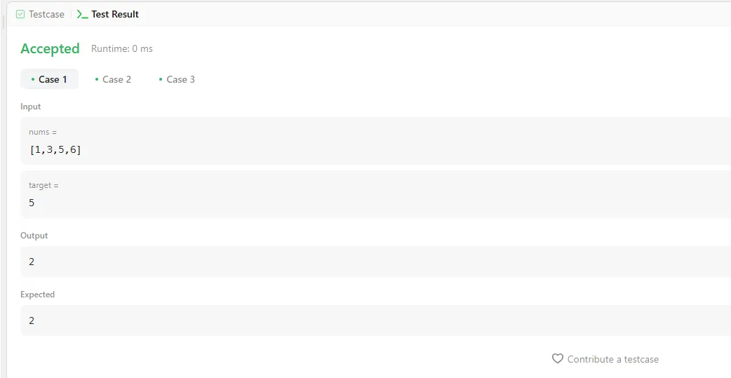 When I ran the code, all three test cases were accepted. Now, let’s go ahead and officially submit the solution.